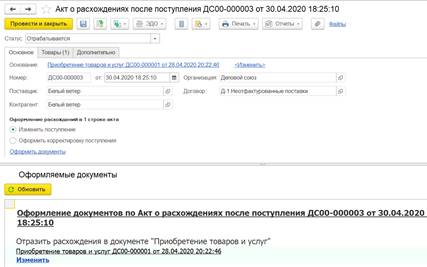 Для таких сценариев предусмотрена возможность оформления раздельной закупки товаров двумя документами по схемам «Товары в пути» и «Неотфактурованные поставки».