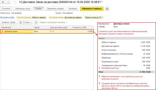 Добавлен новый механизм для работы с сервисом 1С:Доставка.