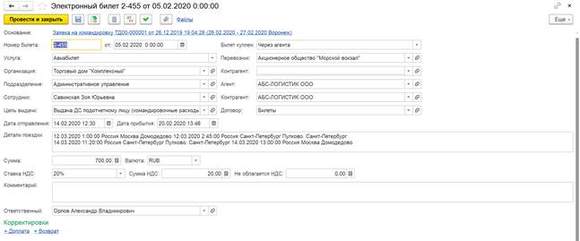 Поддержана возможность корректировки суммовых показателей и ставки НДС при формировании исправительных документов Счет-фактура полученный (аванс) и Счет-фактура выданный (аванс).