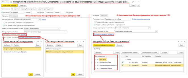 При обновлении информационной базы существующие отборы направлений и баз распределения расходов в карточках элементов списка Правила распределения и показатели и документах Распределение расходов будут перенесены в новую архитектуру настроек.