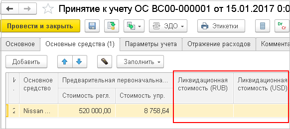 Для поддержки этого требования возможность указать ликвидационную стоимость в валюте регламентированного учета добавлена в следующие документы: