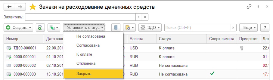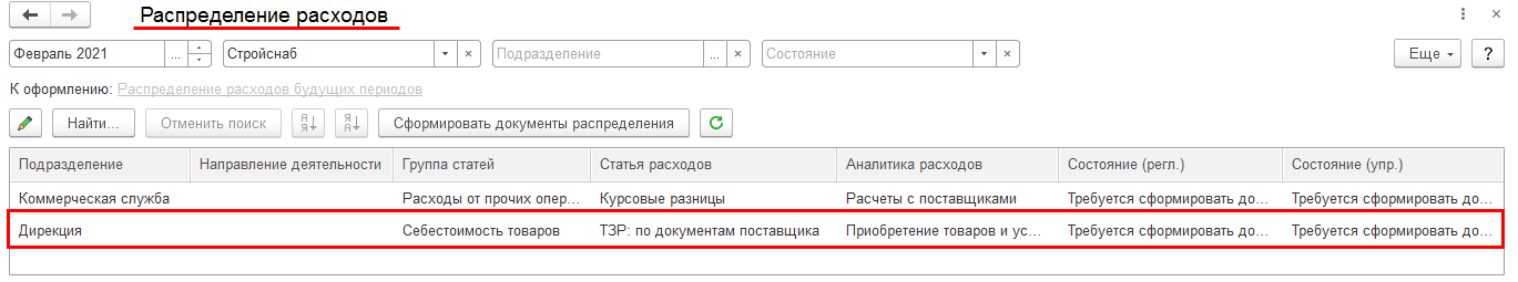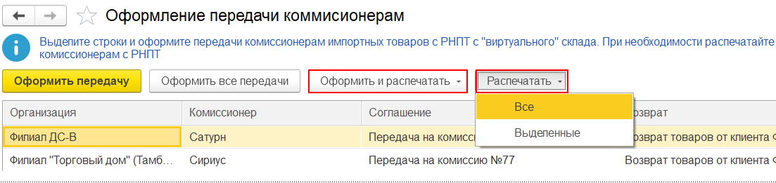 В списке для оформления уведомлений необходимо выделить строки и применить команду Создать.