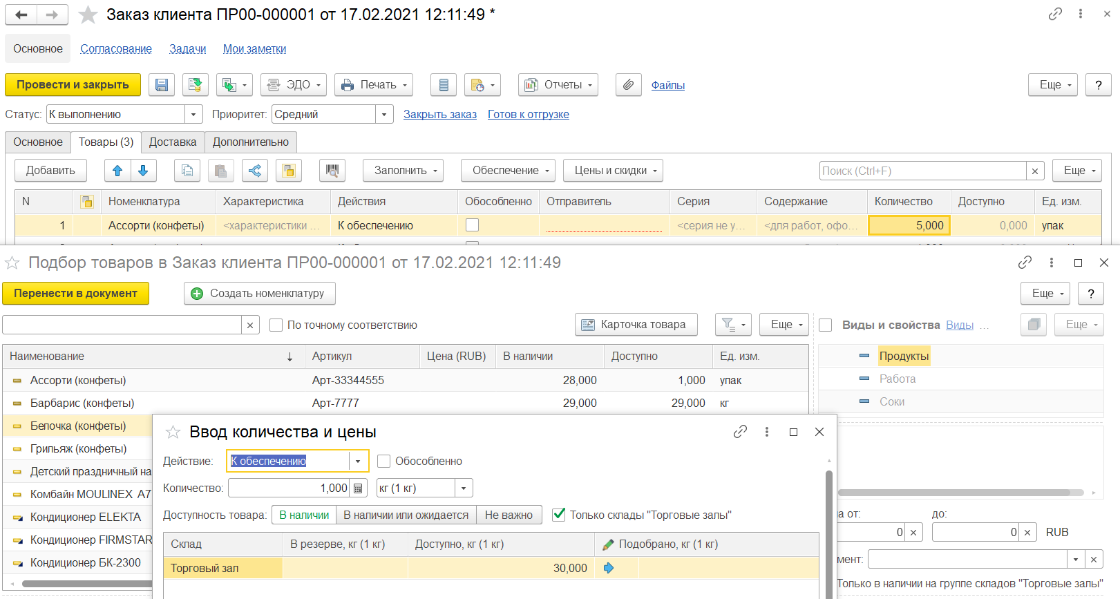 Если известен коэффициент пересчета, то выполняется автоматический пересчет поля Количество по РНПТ при изменении поля Количество.