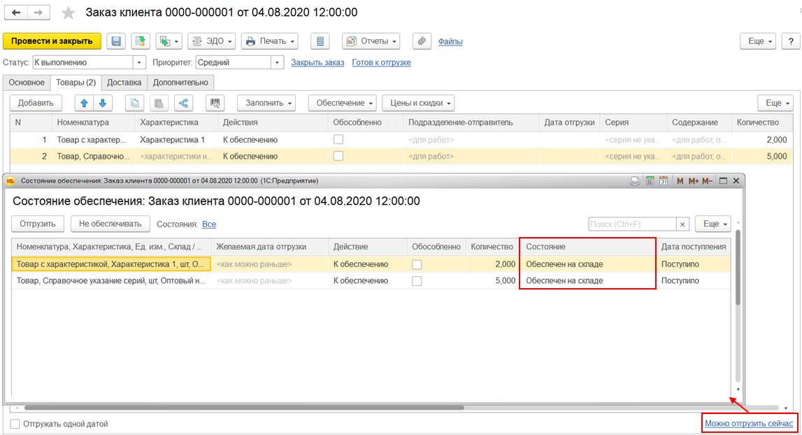 Отгрузка товаров с хранения |