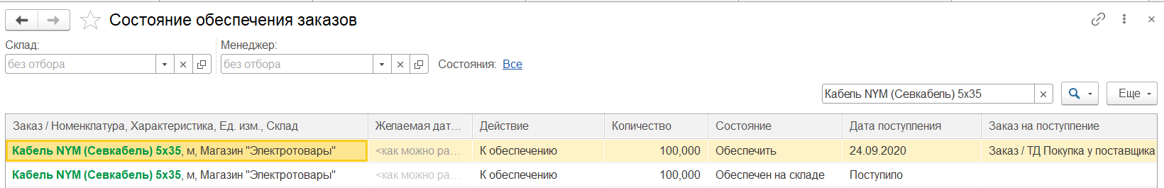 Строки, по которым созданы уведомления, исчезают из списка.