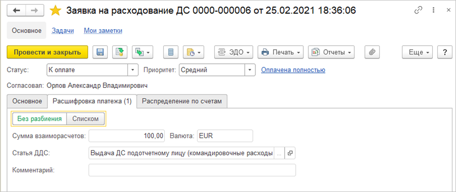 Исправление только «расшифровки платежа» |