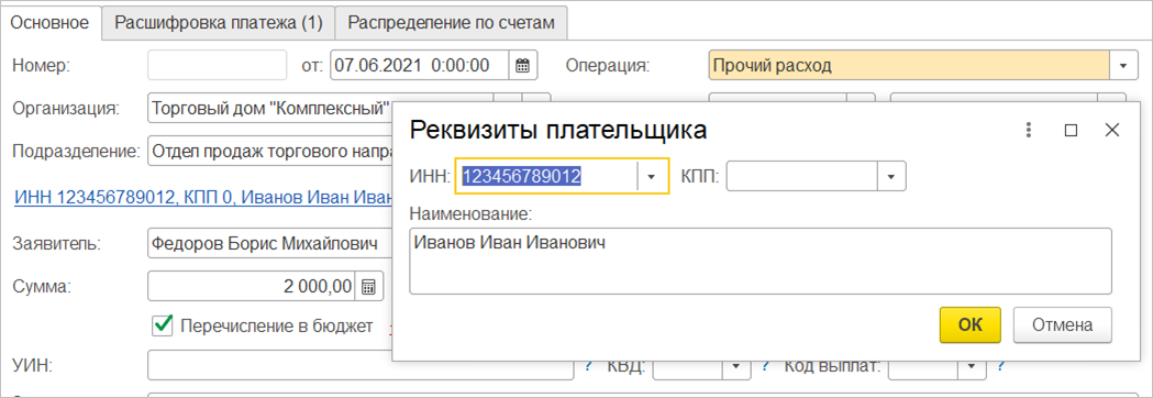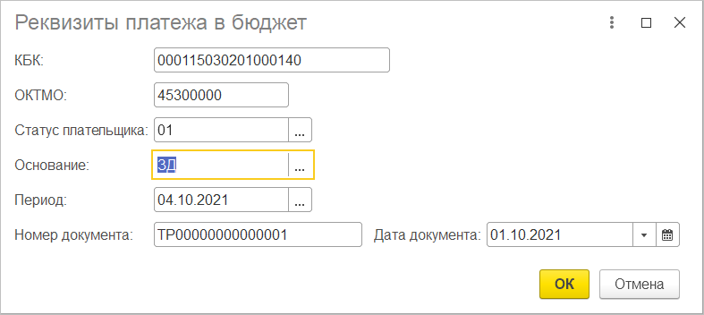 При необходимости реквизиты документа можно указать вручную.