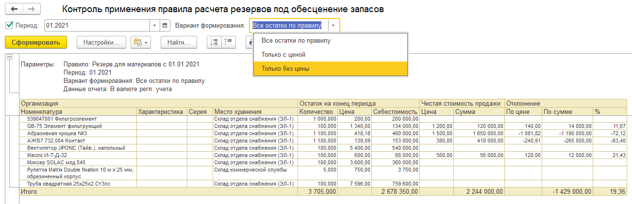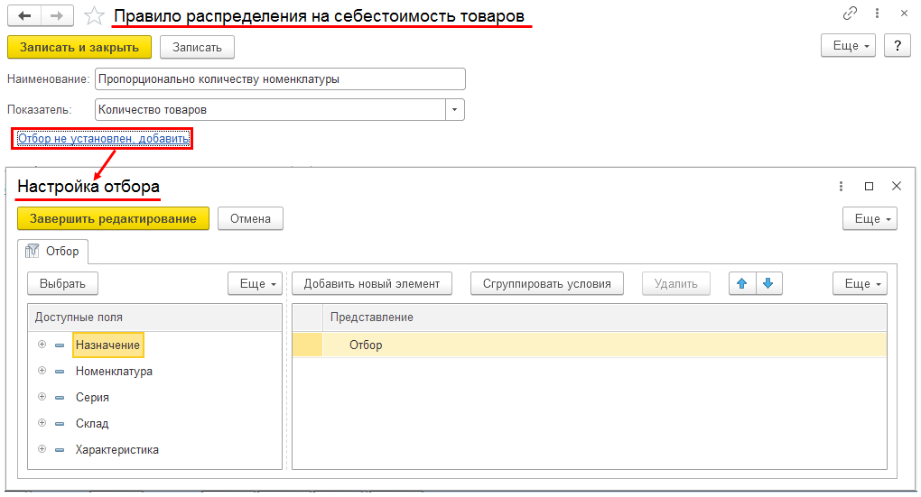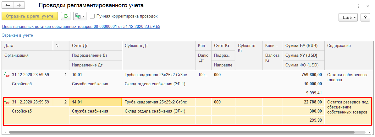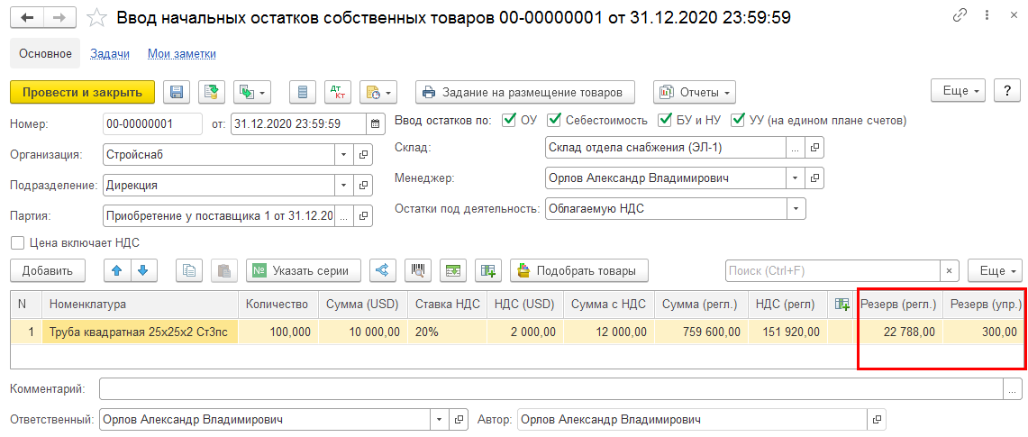 Ввод начальных остатков собственных товаров