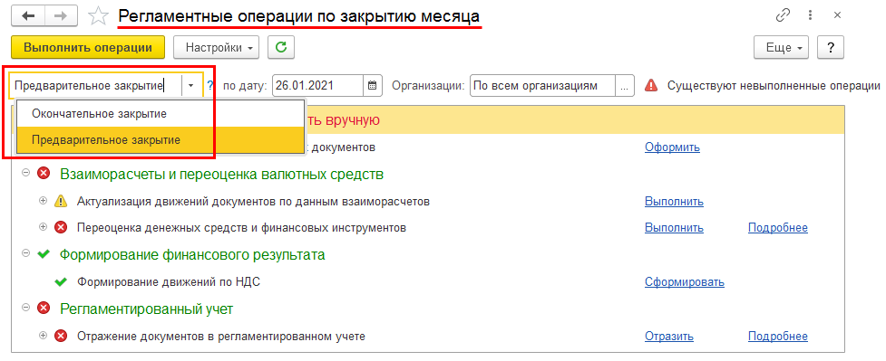 Проведен аудит отнесения документов к разделам и добавлен новый раздел Финансовый контур, который «закрывает» от изменения финансовые регистры оперативного контура. Выполняется контроль изменения онлайн движений документов.
