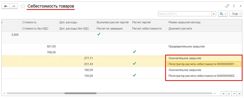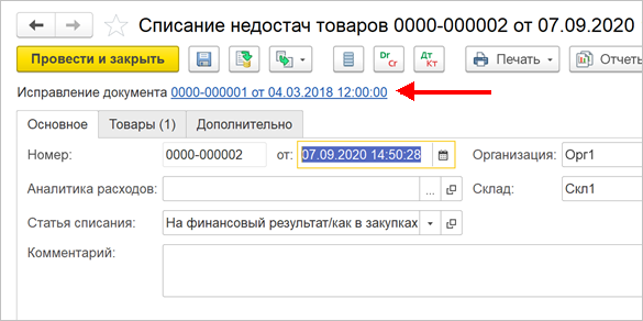 При обсчете «новых» движений исправительного документа с приоритетом используются партии, которые в результате «образовались». Таким образом, минимизируется влияние исправлений на учет. При исправлении приходного документа партией остается исходный исправляемый документ.