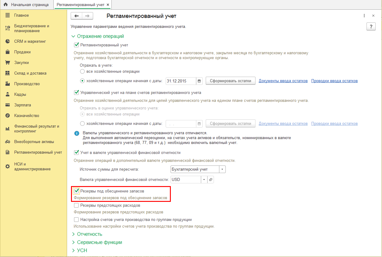 В настройки управленческих отчетов, строящихся в валюте регламентированного учета по нескольким организациям, добавлена группировка по валюте.