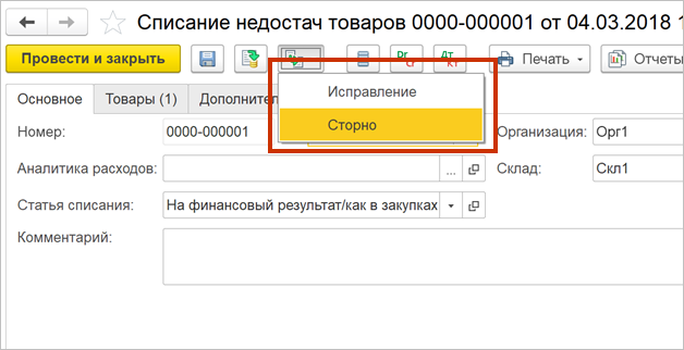 Списание недостач товаров |
