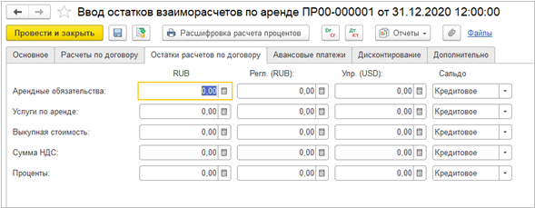 В системе доработан механизм ввода остатков взаиморасчетов по аренде.