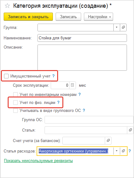 Добавлена возможность не включать имущественный учет и учет по физ.лицам в категории эксплуатации.
