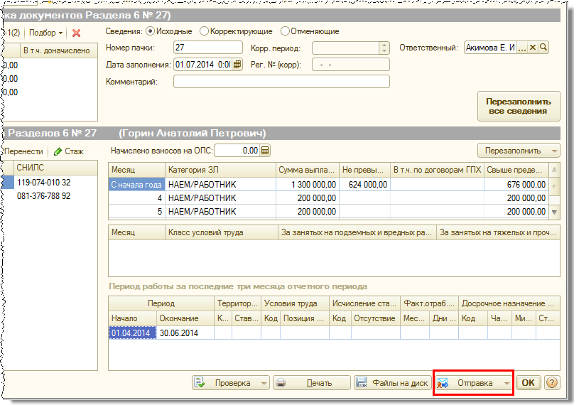 Однако по той или иной причине, например, при копировании исходных сведений прошлых периодов для подачи их в качестве корректирующих, разделы 6 или документы СЗВ-6-4(1, 2) могут быть созданы непосредственно в журнале документов персонифицированного учета.