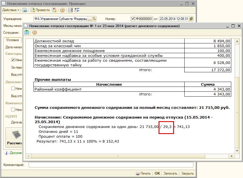 При этом дата, с который изменения вступают в силу, может отличаться от региона к региону. В версии 1.0.72 реализована поддержка расчета отпуска государственных служащих с использованием нового коэффициента с указанной даты.