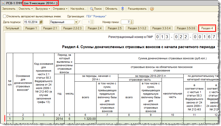 Также в расчете предусмотрен раздел 4 для указания доначисленных в текущем отчетном периоде взносов за предыдущие периоды