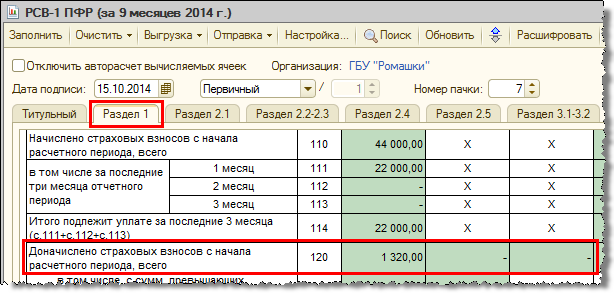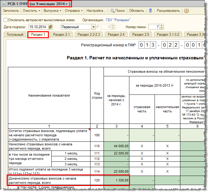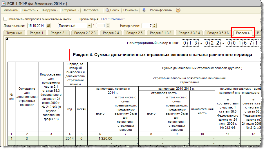 Зарегистрированные этим документом взносы учитываются при заполнении раздела 4 расчета РСВ-1 за квартал, в который входит месяц регистрации акта.