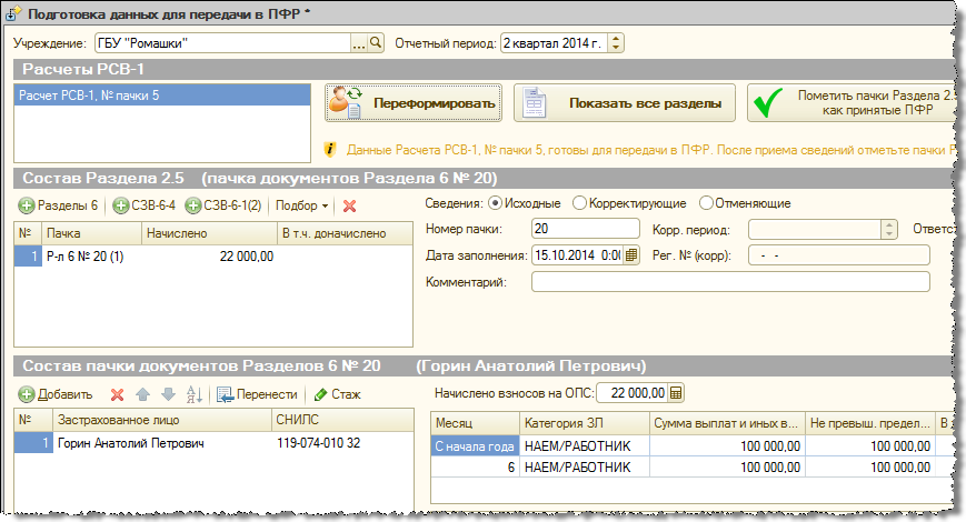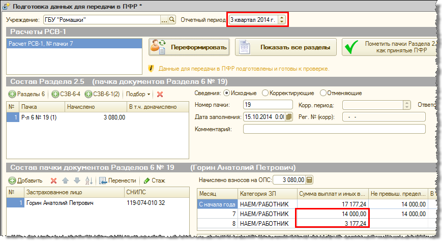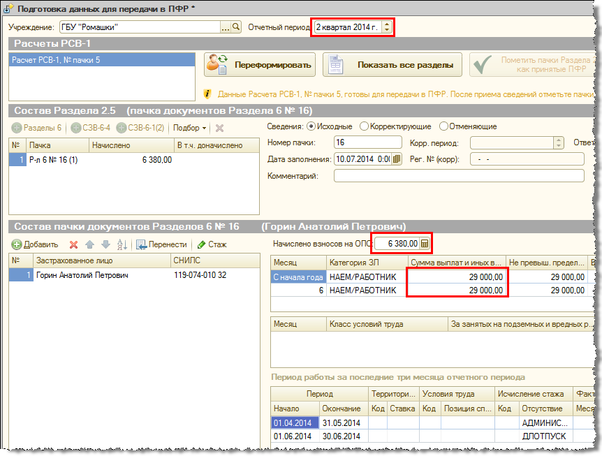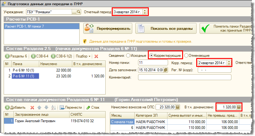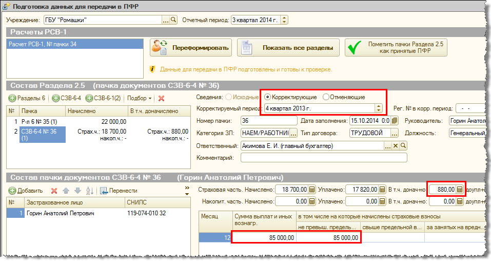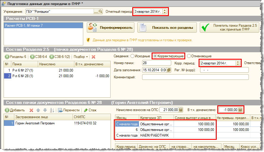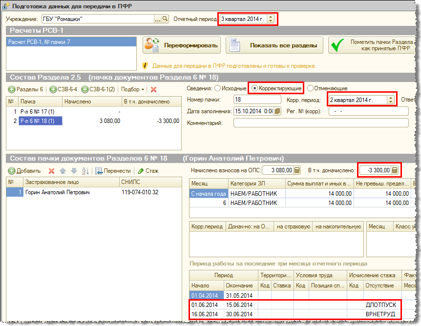 Во-вторых, в расчет могут быть включены корректирующие или отменяющие разделы 6 (а также пачки СЗВ-… для корректировки периодов до 2014 года).
