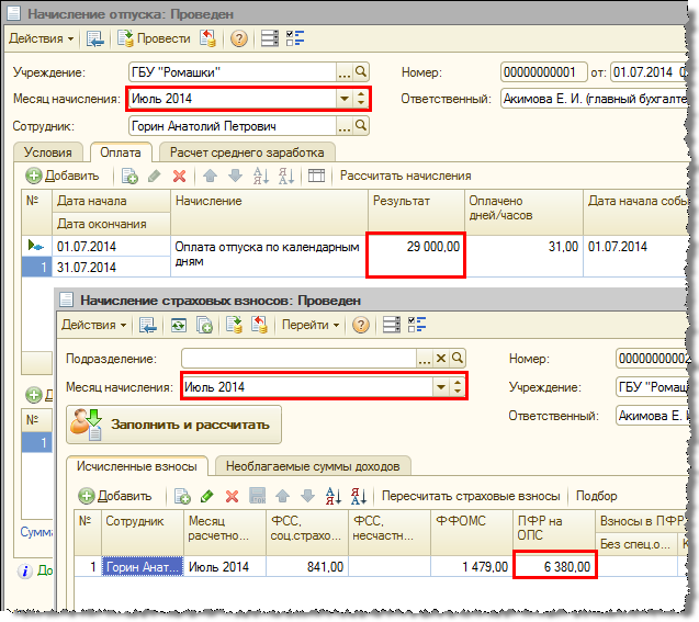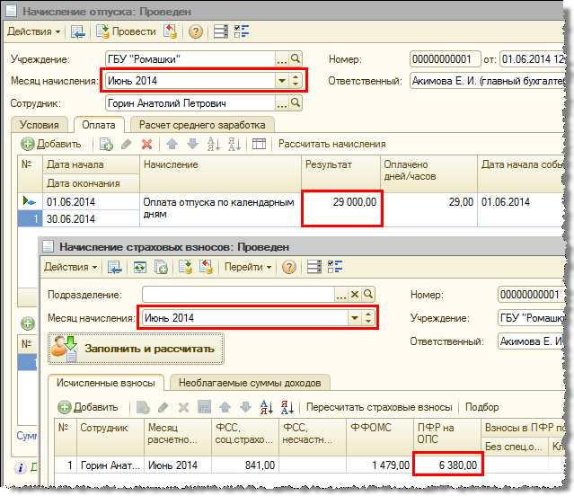 Во втором квартале сотрудник ушел в отпуск, ему были начислены отпускные в размере 29 000 руб. и рассчитаны страховые взносы с них. Взнос в ПФР составил 6 380 руб.