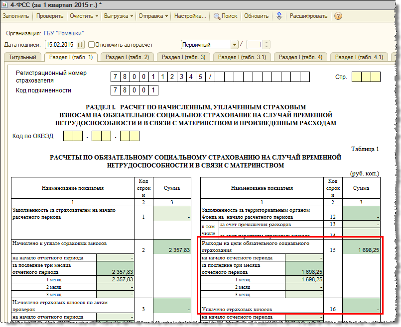 Соответственно, при заполнении документа «Расчеты по страховым взносам» по уплате взносов в ФСС их сумма заполняется за вычетом не только расходов на оплату дней ухода, но и расходов на взносы с нее (2 357,83 руб. - 1 304,34 руб. - 393,91 руб.).
