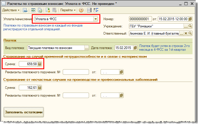 Кроме того, сумма таких взносов теперь учитывается при автоматическом заполнении документа «Расчеты по страховым взносам» – платежи по взносам уменьшаются на нее.