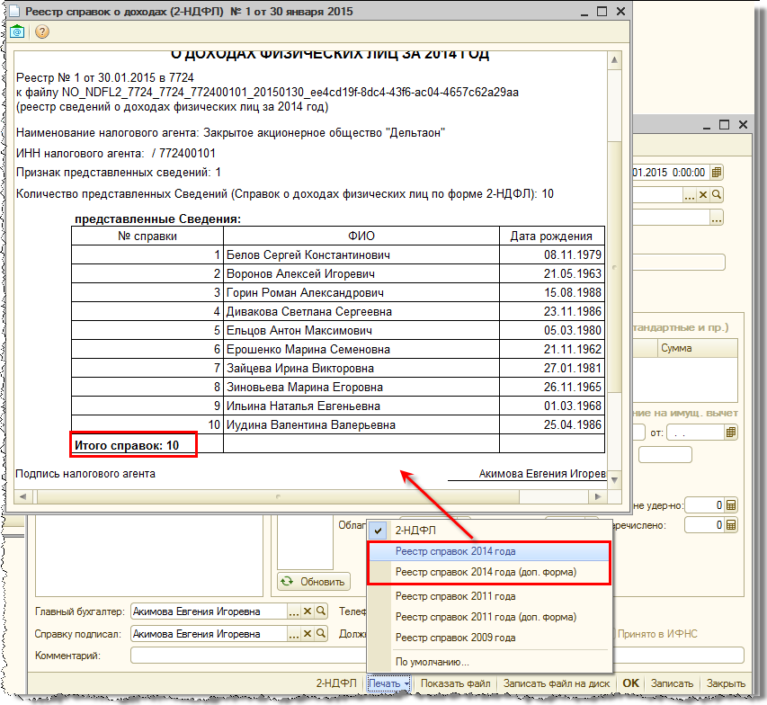 В соответствии с Приказом ФНС РФ от 08 декабря 2014 г. № ММВ-7-11/617@ в версию 1.0.79.2 включена форма Реестра для представления справок 2-НДФЛ за 2014 год.