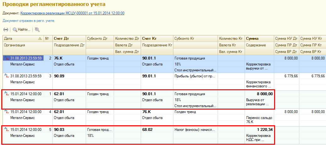 В бухгалтерском учете результаты корректировки отражаются датой создания корректировочного документа.