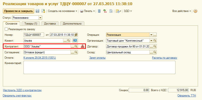 Если заказ клиента оформляется в рамках договора, то в заказе клиента контролируется срок и лимит задолженности в рамках договора.