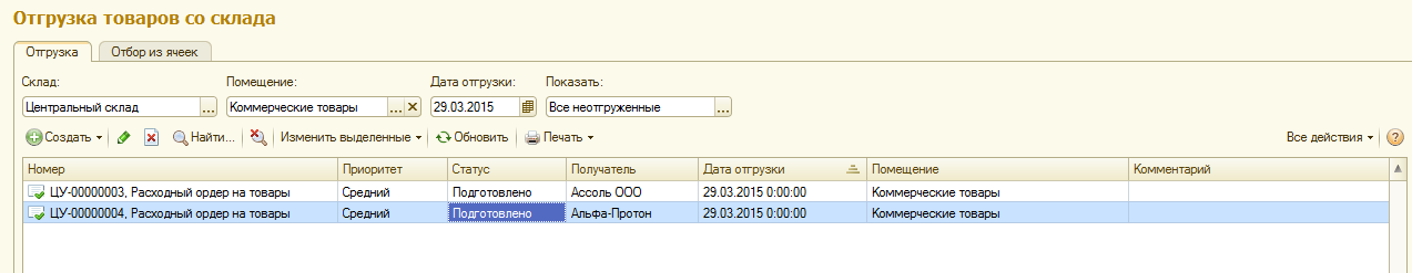 Расходные ордера формируются автоматически. При выборе такого режима работы документы Расходный ордер на товары будут формироваться автоматически при проведении документов отгрузки. В зависимости от установленной схемы работы документами отгрузки будут являться заказы или накладные. При формировании расходных ордеров менеджером или автоматически для работы кладовщика предусмотрено упрощенное рабочее место, в котором показываются сформированные менеджером или автоматически расходные ордера.