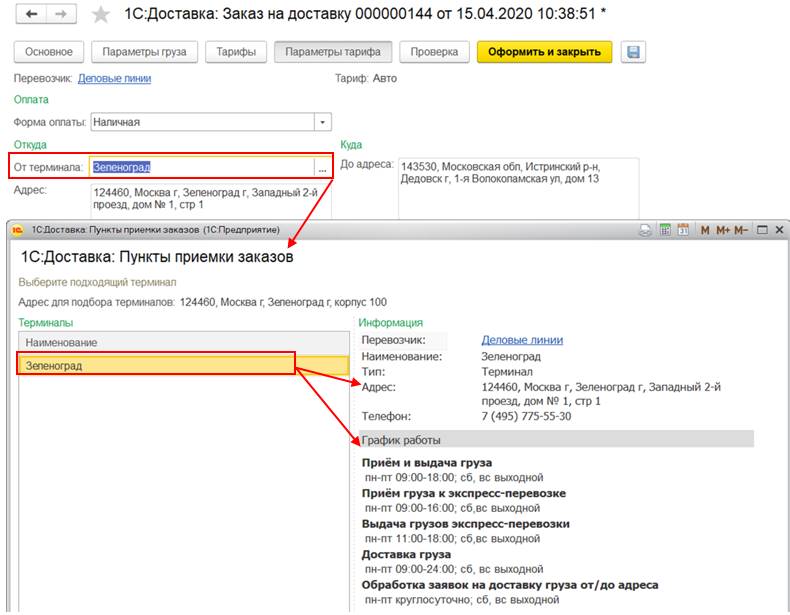 Если для отправителя в качестве способа отгрузки указан Самопривоз, то в параметрах тарифа указывается терминал (пункт приема заказов), до которого отправителем осуществляется доставка груза и с этого терминала перевозчик забирает груз и выполняет доставку этого груза до адреса получателя.