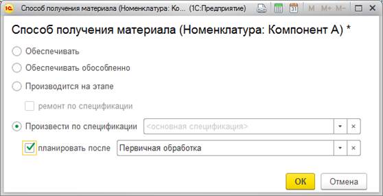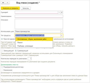 В зависимости от производственного процесса, в планах можно выбрать один из трех типов процесса: