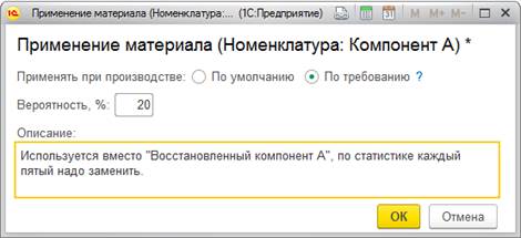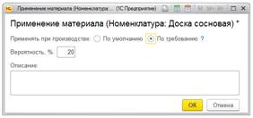 Рассмотрим новую возможность на примере. Определенный материал требуется в производственном процессе не всегда, а только в 20% случаев (в 20% случаев что-то пошло не так и нам потребовался материал на замену). При «оптимистичной» стратегии этот материал не включится в расчет (мы считаем что все пойдет хорошо, замены не потребуются). При «наиболее вероятной» и «пессимистичной» оценке система запланирует потребление материалас учетом заданной вероятности.