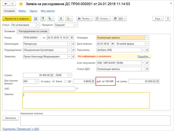 В документы Заявка на расходование денежных средств, ПКО, РКО, Поступление безналичных денежных средств, Списание безналичных денежных средств для операции Конвертация валют добавляется кратность курса. Это позволяет более точно пересчитывать валюты, с отличной от 1 к 1 кратностью курсов.