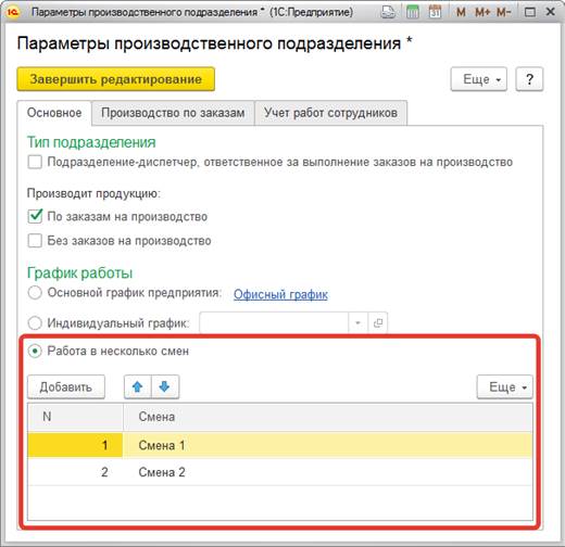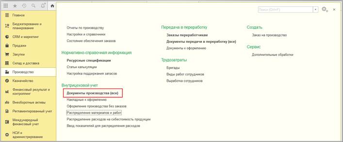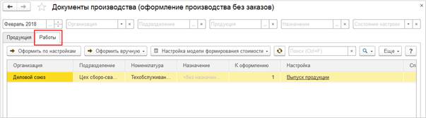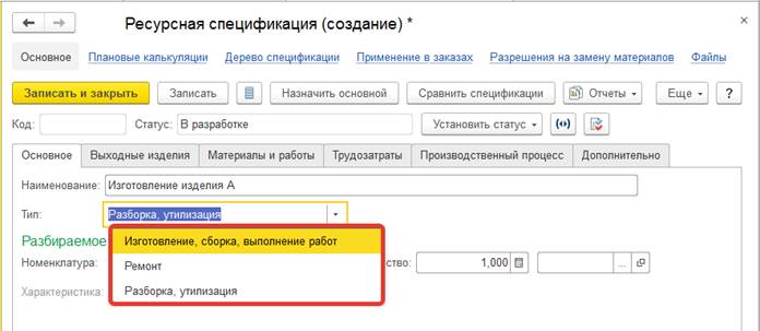 Тип производственного процесса определяет наименование и состав табличной части документа, ограничивает перечень доступных ресурсных спецификаций.