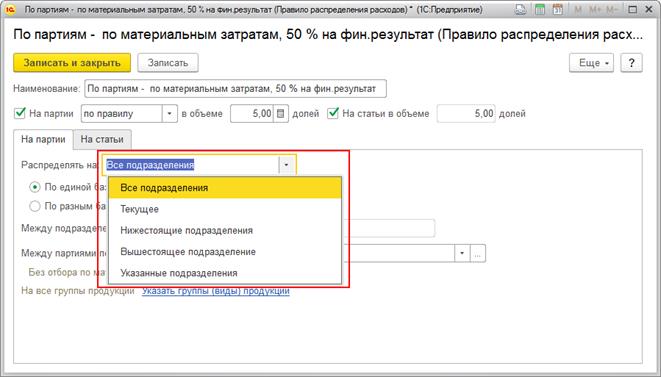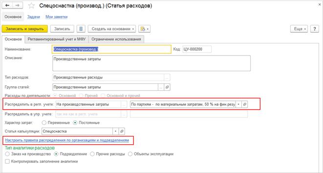 Правила распределения расходов используются в статьях расходов с распределением на производственные расходы: