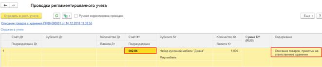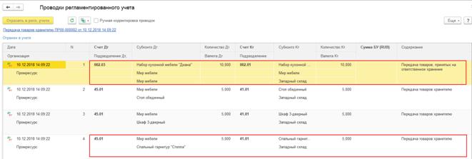 Документом передачи товаров на ответственное хранение формируются проводки регламентированного учета: