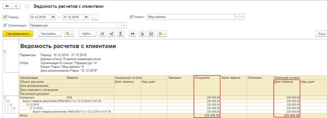 После поступления оплаты от клиента в отчете Ведомость расчетов с клиентами изменится состояние расчетов.