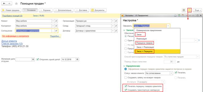 Для документа Заказ клиента добавлен тип операции Передача на хранение с правом продажи. По этой операции не требуется залог за тару. Поведение формы документа заказа клиента с таким типом операции аналогично заказу клиента с типом операции Передача на комиссию.