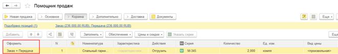 При реализации товаров, подлежащих обязательной маркировки, через Рабочее место кассира необходимо считать штрихкод DataMatrix. При этом проверяется возможность продажи по данным информационной базы и по данным в ИС МОТП. Продукция подбирается только в случае успешного прохождения проверки.