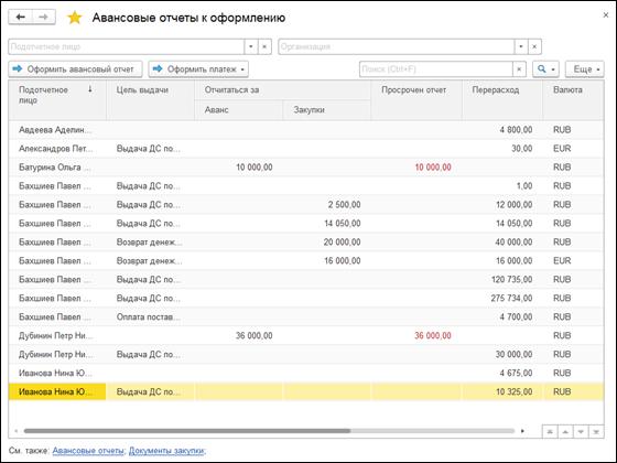 кредиторской задолженности на дату документа в соответствии с настройками,