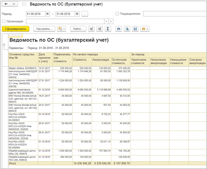 Данный отчет позволяет определить, как рассчитана амортизация, и используется для контроля расчета.