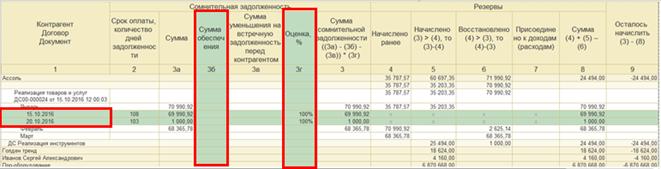 Расчет суммы резерва в документе Начисление и списание резервов по сомнительным долгам для каждой строки табличной части Дебиторская задолженность выполняется по формуле: