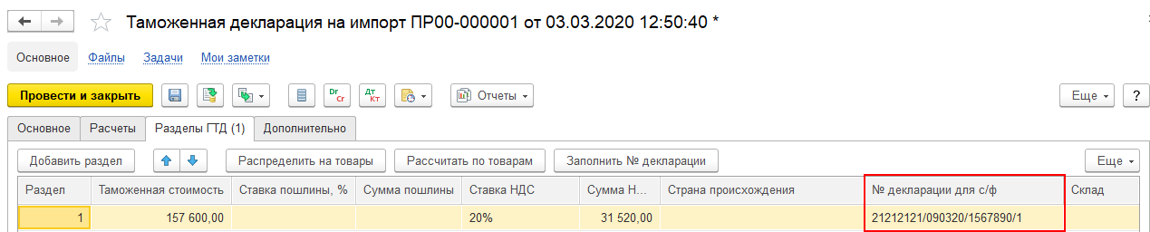 В табличной части таможенной декларации заполнялся № декларации для счет-фактуры.