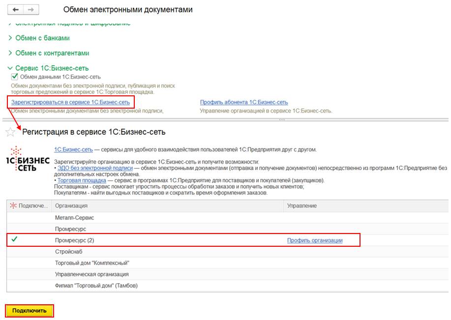 Изменена процедура регистрации организаций в сервисе 1С:Бизнес-сеть. Теперь регистрация производится через веб-сайт Бизнес-сети с подтверждением по одноразовому паролю.