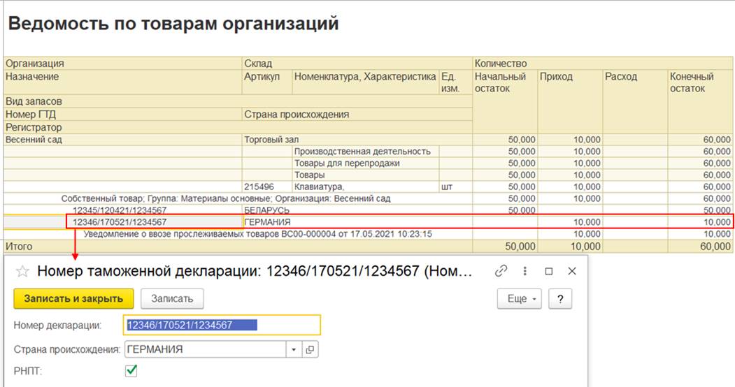 Для регистрационного номера партии товаров страна происхождения определяется из номера ГТД остатков. РНПТ записывается в наименование и регистрационный номер создаваемых элементов, номеров грузовых таможенных деклараций.