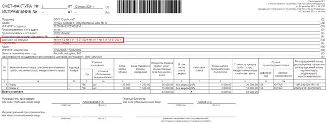 В шапку счета-фактуры добавлена строка 5а «Номер и дата документа об отгрузке», в которой указываются реквизиты документов об отгрузке с привязкой к порядковым номерам строк счета-фактуры.