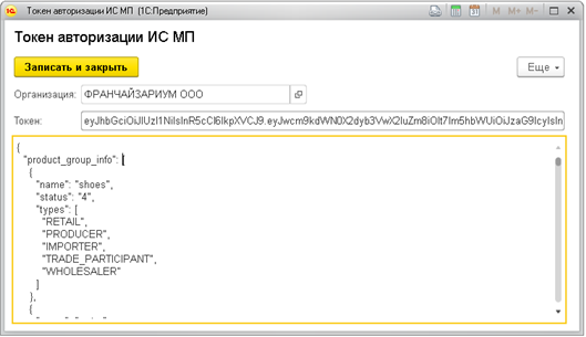 В частности, токен авторизации позволяет получать содержимое упаковок и актуальные статусы кодов из ГИС МТ с рабочих мест на складе или в розничном торговом зале без использования подписи.