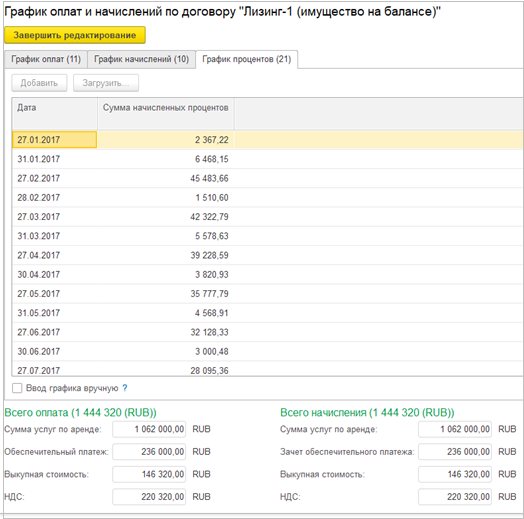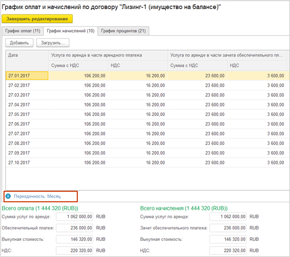 Теперь проценты начисляются на дату оплаты и на конец каждого месяца в течение срока аренды.