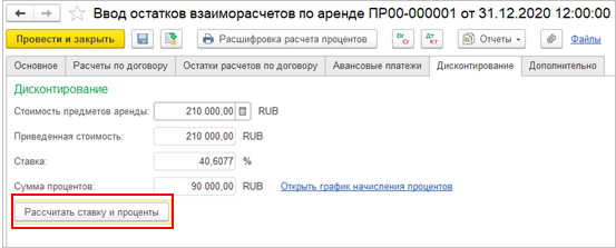 Добавлена возможность автоматического расчета графика начисления процентов, ставки дисконтирования.